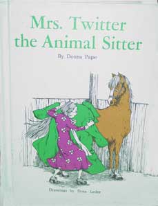 "Mrs. Twitter the Animal Sitter", written by Donna Pape, drawings by Dora Leder, first edition, Garrard Publ. Company, 1972.