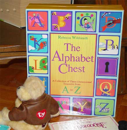 A unique "book" box written and illustrated by Rebecca Wildsmith, copyright 1998, published by Piggy Toes Press, CA. Inside the box is a little door for each letter of the alphabet, when a door is opened there is a pop-up to illustrate the appropriate letter of the alphabet.