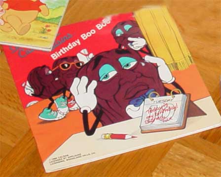 A "California Raisins" children's softback story book. "California Raisins, Birthday Boo Boo" by David Nichols, illustrated by Pat Paris. Published by Checkerboard Press, div. of Macmillan, copyright 1988.