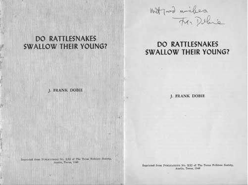 From Kay and Lyn's private collection, by J. Frank Dobie, 1946, Do Rattlesnakes Swallow Their Young?.