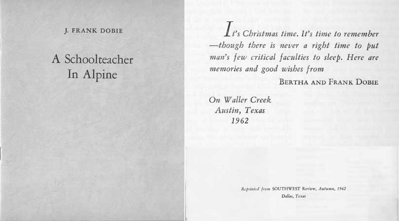 From Kay and Lyn's private collection, by J. Frank Dobie, Christmas 1962, A Schoolteacher in Alpine.