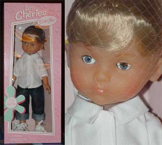 2002 Corolle Les Cheries doll "Camille". She is 14" tall and dressed like a teenager with her rolled up jeans, white shirt and sneakers. A pretty girl, a quality doll, and still new in the box. She is scented like vanilla which is customary for all or most Corolle dolls.