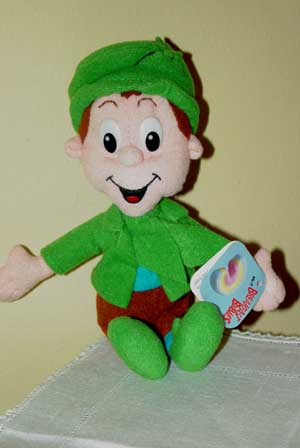 "Lucky the Leprechaun" copyright 1997 by General Mills, Inc. Breakfast Babies manufactured by Adpac Corp. This 9 inch little guy represents "Lucky Charms" cereal and is one of seven in the series: Chip the Cookie Hound, Honey Nut Cheerios Bee, Lucky the Leprechaun, Trix Rabbit, Wendell the Baker, Count Chocula, and Sonny the Cucko Bird. He is all plush and his clothes are nonremovable. He has button type eyes and embroidered mouth and eyebrows.