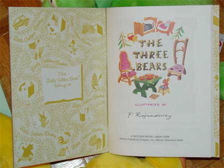 "The Three Bears", A Little Golden Book, illustrated by F. Rojankovsky, with facsimile of his name on the cover page.