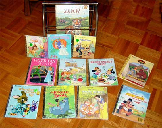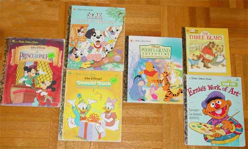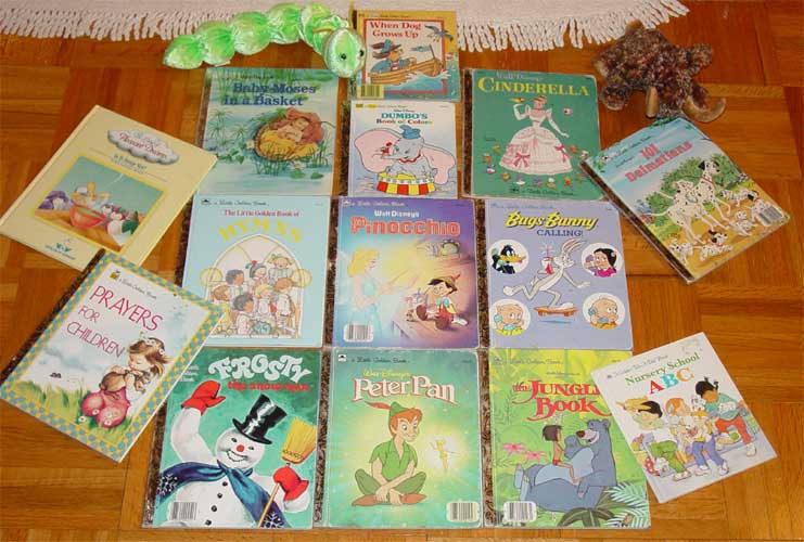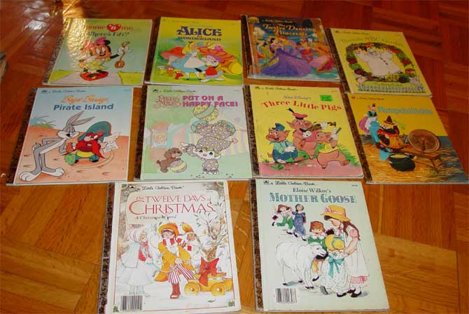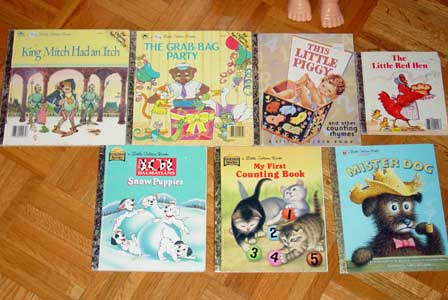 "Tickety-Tock", "Amanda's First Day of School", "Scuffy", "I Love You Mommy", "My Book of Poems", and other Little Golden Books.