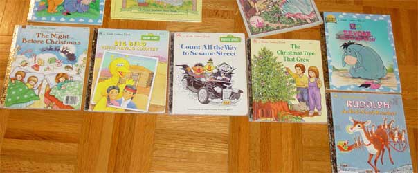 Little Golden Books, "The Christmas Tree That Grew", "Count All the Way to Sesame Street", "Big Bird Visits Navajo Country", and "The Night Before Christmas.