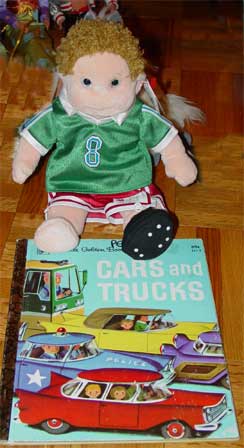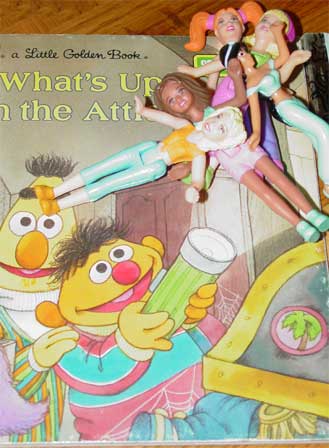 A Little Golden Book, "What's Up in the Attic". It looks like it may be some of Kay's dolls.