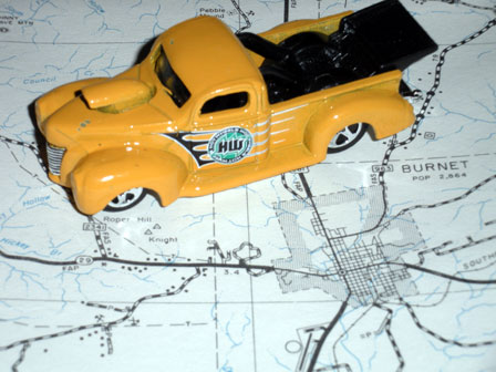 1997 Mattel Hot Wheels, made in Malaysia. Yellow 1940's Ford truck with Hotwheels (HW) emblem on both doors.