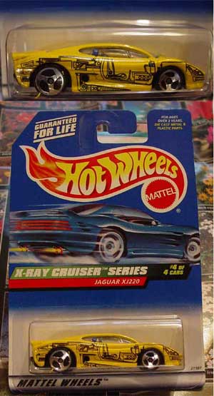 Hot Wheels by Mattel, 1999, X-Ray Cruiser Series. This Jaguar XJ220 is #4 in the four car series. The entire 1999 X-Ray Cruiser Series included #1 1963 Corvette, #2 Lamborghini Diablo #3 1967 Camaro, and #4 Jaguar XJ220.