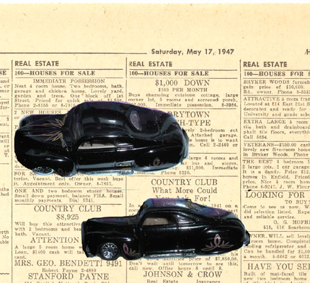 1988 Mattel Hot Wheels, made in Malaysia. Purple colored T-bucket-type convertible with side-pipes and open engine-room.