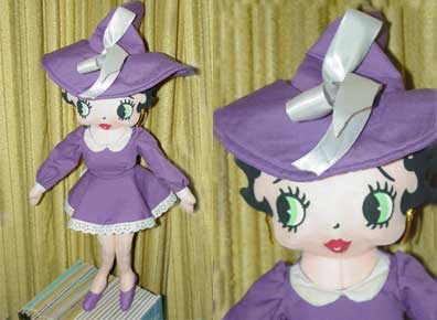 Berry Boop as "Mary Poppins Betty", dressed in a purple dress, hat and shoes. Betty is a Kellytoy and is approximately 18 inches tall. Her clothes are non-removable. Copyright 1999 by King Features Syndicate, Inc./Fleischer Studios. Trademark The Hearst Corporation/Fleischer Studios.