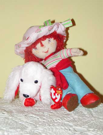 Strawberry Shortcake stands 8 inches tall. She is an all plush version by Kellytoy copyright 2004 by Those Characters From Cleveland.