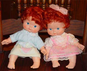 1982 Strawberry Shortcake "Blow A Kiss" dolls, by Kenner. Copyright by American Greetings and made in Hong Kong. Neither is wearing her original clothes.