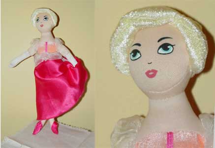 An all soft plush doll by Lovely (NINGBO) Toys Co., Ltd., China. This ballet dancer is 11.5 inches tall, is wearing non-removable clothes. She has a painted face and fabric hair.