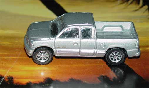 Chevrolet 1500, silver color, extended cab, Silverado pickup by Maisto.