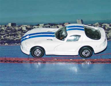 Maisto Chrysler Viper, white color with blue racing stripes over the top and hood.