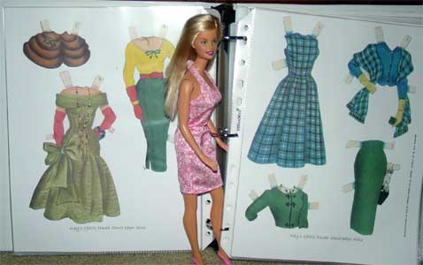 Barbie searches through many clothes catalogs while trying to decide which dress she would like to have. Today she is looking through Dinah Shore's clothes from the 1950s. She really likes the styles and wishes it was easier to find pretty clothes in the department stores.