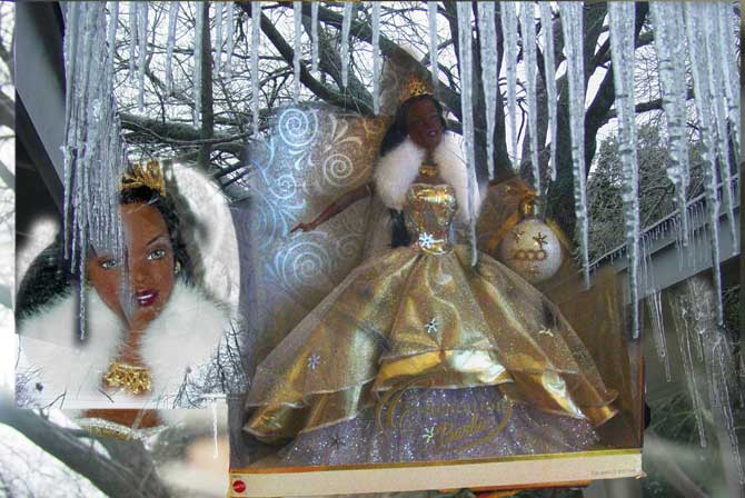 This beautifully dressed Barbie is ready for the new Millennium as she chooses the perfect icicles for decorating her Christmas tree.