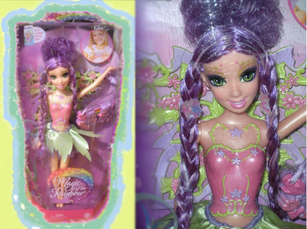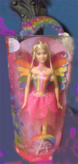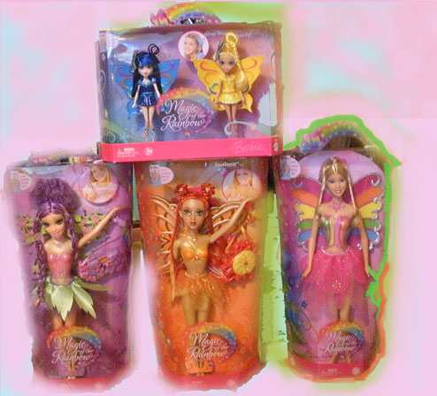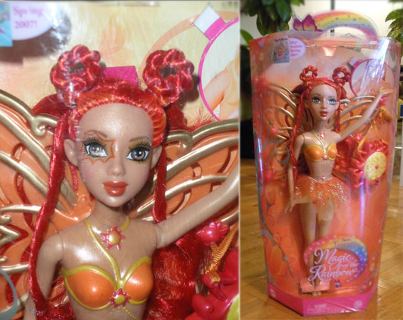 Barbie Fairytopia "Magic of the Rainbow", Sunburst, 2006 Mattel, Inc. Included in the box with the doll is a necklace with a secret rainbow inside. Sunburst is one of three in the Magic of the Rainbow series, which includes Sunburst, Glee and Lumina.