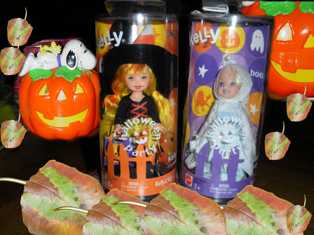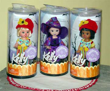 Halloween Wishes for 2005. Barbie's little sister Kelly is dressed for a Halloween Party. This is three of the five Kellys that make up the 2005 Halloween series.