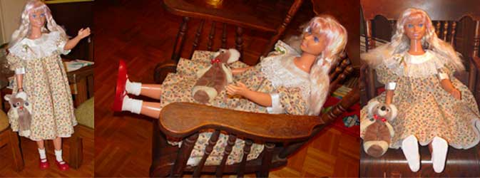 Barbie's Aunt Jo went to the store and bought this dress and all the accessories especially for Barbie. Barbie loves the outfit and feels really special when she dresses to a "T".