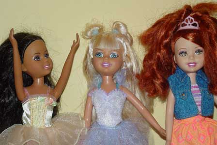 Wee 3 Friends from the Barbie family. These three girls, dated 2004, are from the Dance, Dance, Dance series. Two are wearing their original dance costumes.