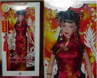 Festivals of the World Series, 2005, "Chinese New Year" Barbie doll. Barbie Collector's Pink Label, keepsake dolls at quality retailers. "Designed by Katiana Jimenez, Chinese New Year Barbie doll