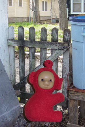 Made for McDonald's, a 2000 red Teletubbie. This is Po. "Her antenna is short with a circle on top. Po is the smallest of all the Teletubbies and often the one who gets into innocent trouble. Her favorite thing is her scooter as she calls it ("Po 'cooter!"). Of all the Teletubbies, Po usually becomes most involved with the audience." [wikipedia.org]