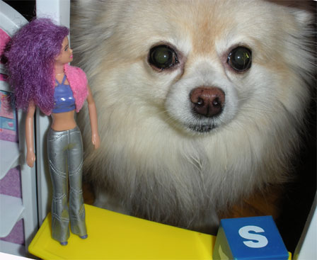 Made for McDonald's, Mattel 2001, Barbie with purple hair. "Oh, what a cute puppy dog."
