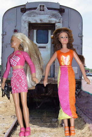 Made for McDonald's, 2002, Barbies. After a long train ride these two Barbies are ready to tour the town.