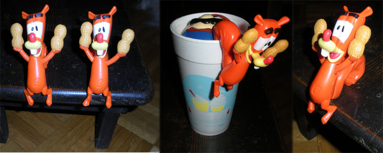 Cartoon Network Squirrel Boy Nutty Rodney toy, mfg. for McDonald's, 2007. McDonald's 2007 Cartoon Network Happy Meal activity figure toys each come with a different colored pencil: (1) Wilt with Stencil Stick, (2) Blooregard Wacky Writer, (3) Swinging Jake, (4) Bull Pencil Chomper, (5) Leon Side Spinner, (6) Nutty Rodney, (7) Raj's Cracked Up Canoe, and (8) Lazlo.