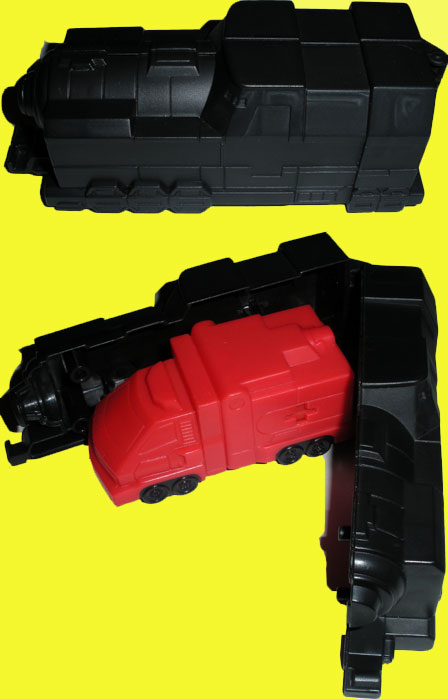 Made for McDonald's, 2000. Train engine stores red truck inside.