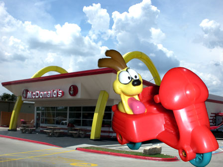 Made for McDonald's. Here's Odie on a motorscooter, but he dropped off Garfield to guard the store before his picture was taken.