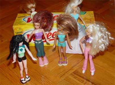 Made for McDonald's, 2003, three Betty Spaghetties. Mandy is wearing the pink skirt.