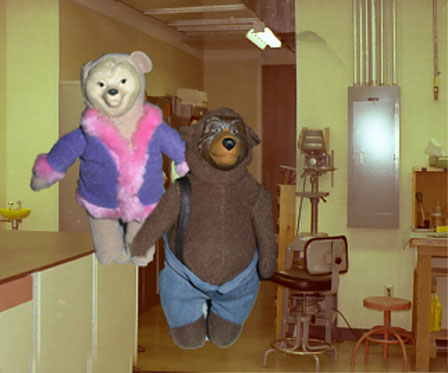 Made for McDonald's, Country Bears. These Country Bears have come to "the big city" and are touring an electronic equipment testing room.