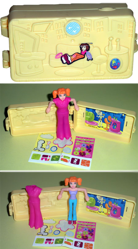 Made for McDonald's, Mattel 2006, Polly Pocket's Polly World "Polly and the Pockets" with her own case and stickers.