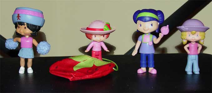 McDonald's Happy Meal toys from January-February 2006. Strawberry Shortcake series by Those Characters From Cleveland (TCFC). These little 4" characters are #1, #2, #3, #4 of the total of 8 in this series.