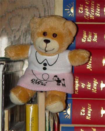 Build-a-Bear made for McDonald's, May 2006 Happy Meals. This little bear is number four of the eight bears in this series. She is wearing her 1950s pink and black "poodle-skirt". There are 16 outfits available, two each, for each of the eight bears.