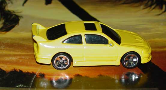 Mfg. for McDonald's, 2001 Mattel Hot Wheels, made in China, S-GL 09. Yellow car with sunroof and spoiler.