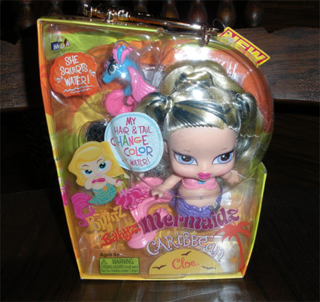 Bratz (MGA) Babyz Mermaidz, Carribbean Cloe, in original box in original clothes. She squirts water and her hair and tail change color in water.