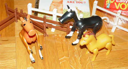 Plastic toy horses.