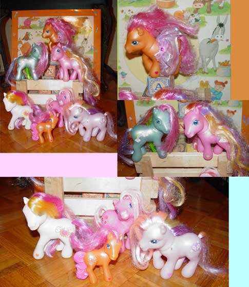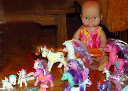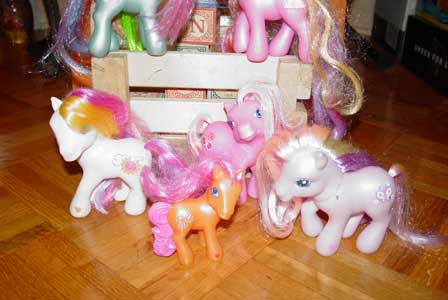 My Pony, here is an assortment of different colors and sizes of ponies. Other toy horses are included in the herd.