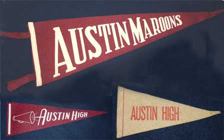 1948, 1949, and 1950 pennants from Austin High School, Austin, Texas.