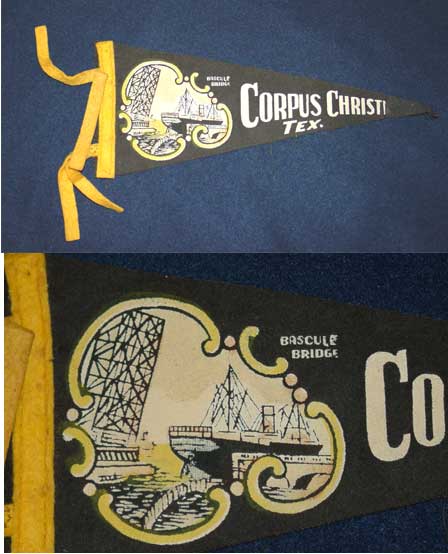 1943 Corpus Christi, Texas pennant. The Bascule Bridge was constructed in 1926 and removed in 1960.