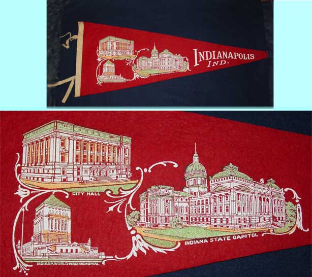 A souvenir pennant purchased in August 1947 while visiting Indianapolis, Indiana during a summer vacation.