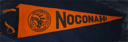 Pennant from the late 40s or early 50s from Nocona High School. Named for the Comanche Chief, Peta Nocona, located in North Central Texas. This part of North Texas was the major camping and feeding grounds known as Red River Station for the Longhorn cattle headed north on the famous Chisholm Trail. Nacona is the Leathergoods Center of North Texas. Nacona is the original home and birthplace of one of the most famous names in Cowboy boots.