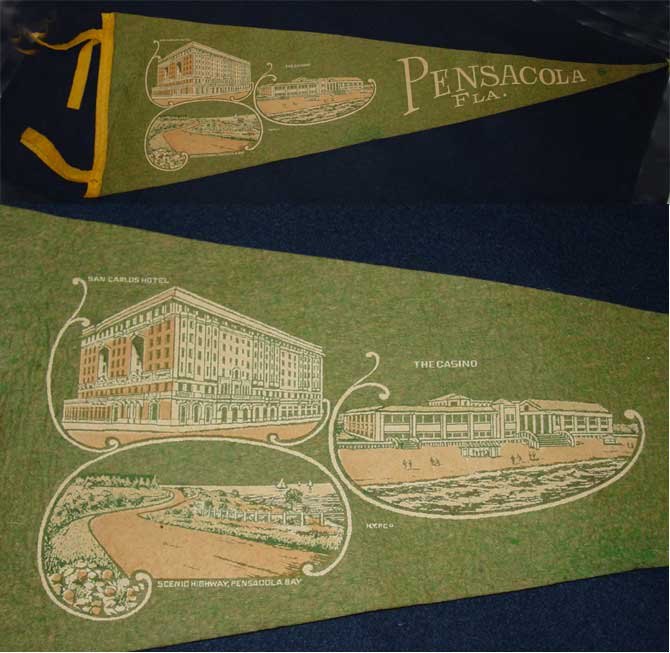 Souvenir pennant from Pensacola, Florida, purchased in Pensacola in either 1939 or 1940.