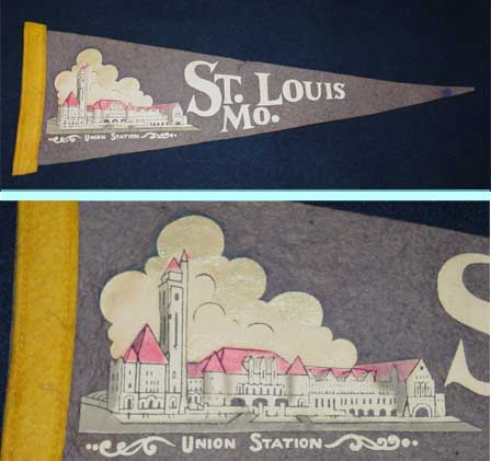 A souvenir pennant purchased in August 1947 while visiting St. Louis, Missouri during a summer vacation.