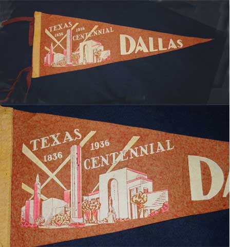 A souvenir pennant bought during the 1936 Texas Centennial celebration in Dallas, Texas.