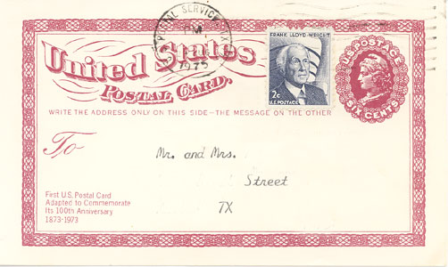 "United States Postal Card, First U. S. Postal Card Adapted to Commemorate Its 100th Anniversary 1873-1973."